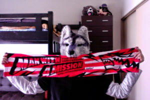 MWAM 5周年マフラータオルを掲げる伏村。タオルの持ち方はVo.リスペクト。 今年もこの日がやってきた。そう、頭は狼、体が人間の『究極の生命体』、MAN WITH A MISSIONの製造日(いわゆる誕生日)である。